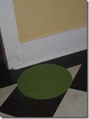 We found this little green placemat that B uses for his thinking spot. The spot can easily be moved or packed up to provide B with as much consistency as possible. The spot is gaining significance by the day…the first few attempts at sitting on the spot ended with giggling and laughing…though now, after several thinking times, B seems to be catching onto the idea.