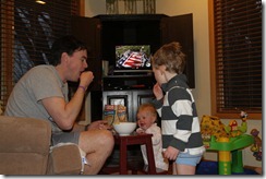Instead of watching the game, these two cheered C on as he enjoyed some chips and guacamole…B made sure to help himself to some of the goodness.